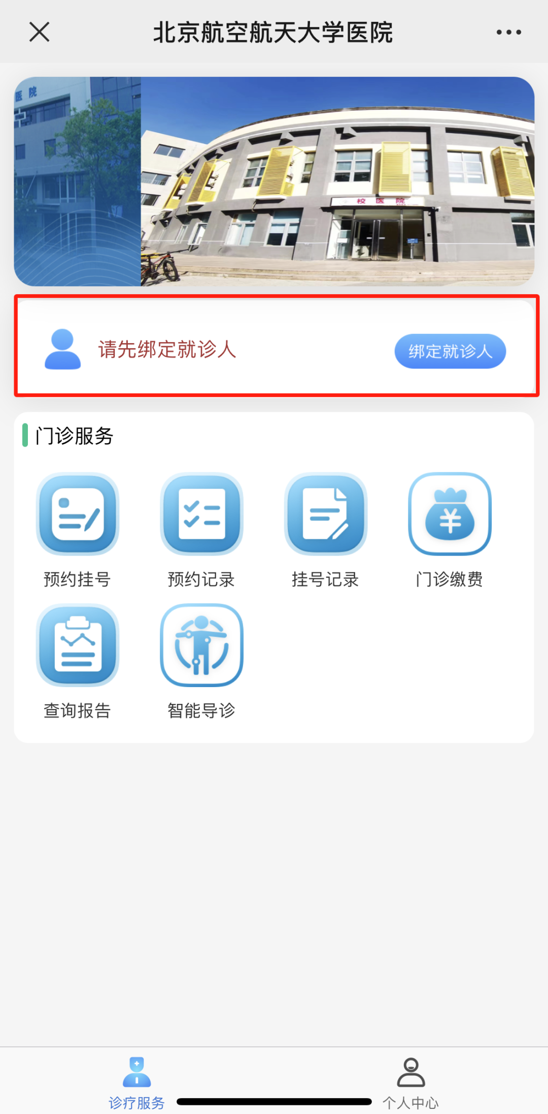 1)点击系统上方“绑定就诊人”,输入姓名、证件号码、手机号后查询就诊卡。北航公疗患者、在bw必威西汉姆联就诊过的自费及医保患者可以绑定就诊卡。