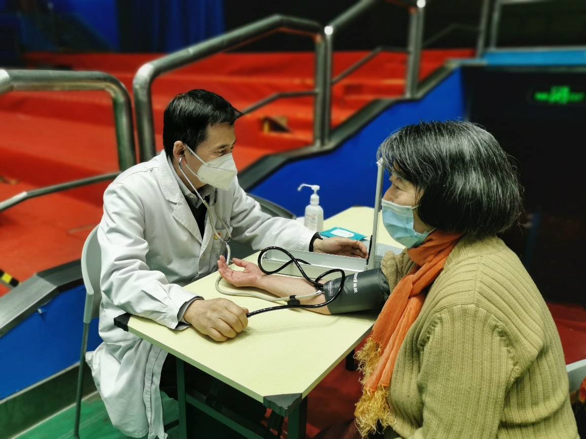 图:张新华院长为60岁以上老年人测量血压