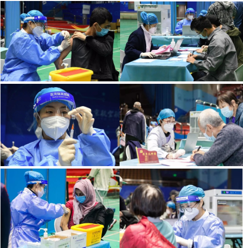 每天的接种工作都是紧张有序而忙碌的,每名医生要进行多次知情同意告知,面对咨询耐心讲解,消除师生居民的疑虑。3月28日,首位到达接种现场的外籍教师来到卢艳医生所在的7号台,她已在短时间内掌握外籍师生接种流程,从容地阐明知情同意内容,一整天下来,没有一刻喘息休息的时间。护士们日均可以完成300余剂次接种,最快的时候达一分钟一人次,从起瓶盖、抽药、消毒、排气、注射、拔针到最后的按压,所有动作一气呵成。王淑云护士创下单日440针的接种记录。