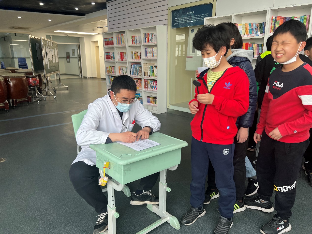 现场安全有序,医护们认真负责、耐心细致,引导学生到指定位置检查,帮助孩子摆正姿势,对每位学生进行视力检测、记录,用一天时间高效完成附小1年级至6年级全体学生的视力检测。医护们用点滴温暖换来“北航花朵”开心的笑容,以平凡而朴实的行动践行为人民服务的初心。