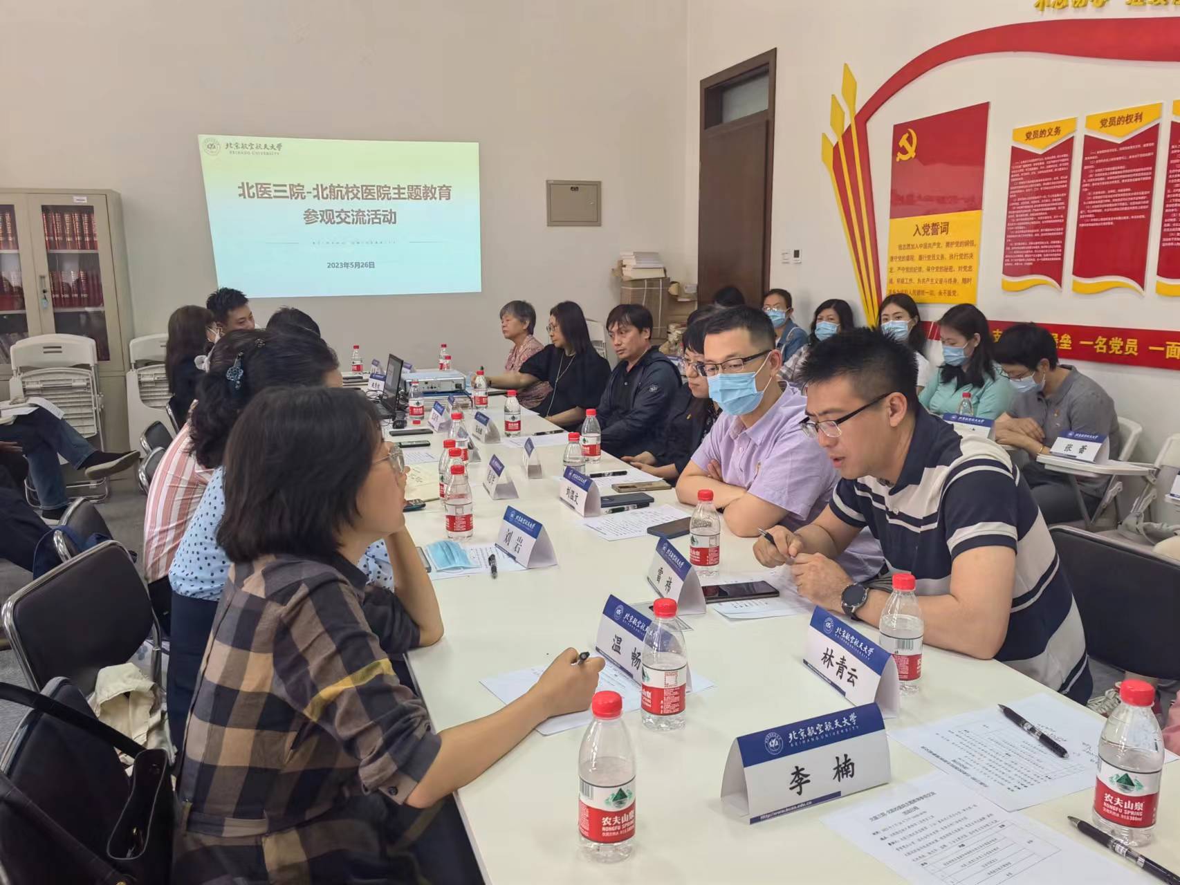 为深入开展学习贯彻习近平新时代中国特色社会主义思想主题教育,2023年5月26日,bw必威西汉姆联与北医三院开展主题教育调研参观活动,北医三院工会常务副主席刘温文、监察室主任孙华一行到北航调研参观,北医三院门诊部、医保办和国内合作处等8个机关部处职工代表,bw必威西汉姆联院班子成员、科室主任及职工代表参加活动。