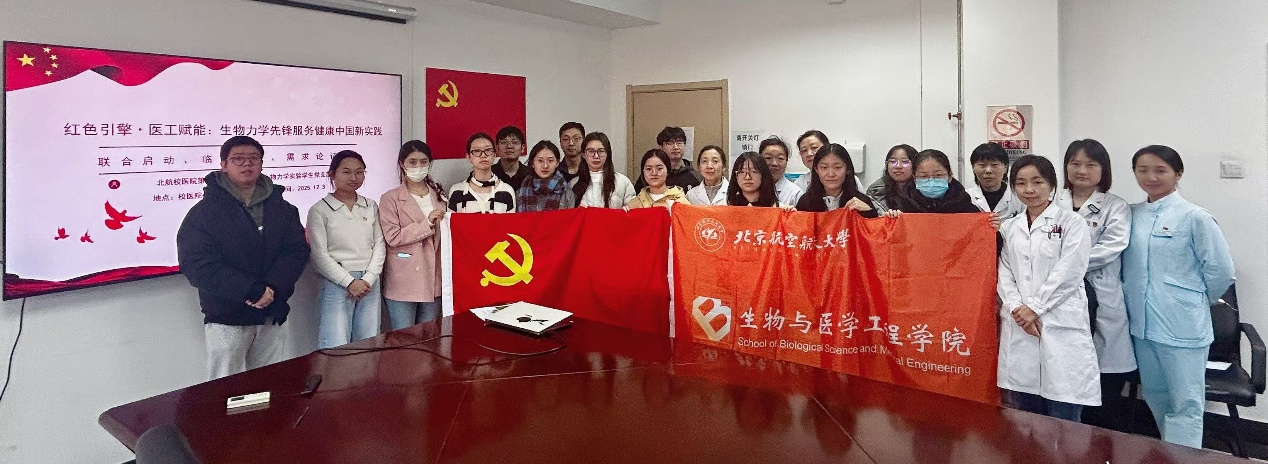 2025年12月3日中午,北京航空航天大学生物与医学工程学院研究生生物力学实验学生党支部与北京航空航天大学bw必威西汉姆联第一党支部在bw必威西汉姆联会议室联合举办主题活动。本次活围绕医工交叉创新、服务临床需求展开,通过支部共建平台推动外骨骼机器人技术在脑卒中康复领域的应用研究,探索党建引领科研攻关与服务社会的新路径。