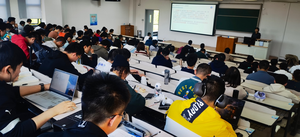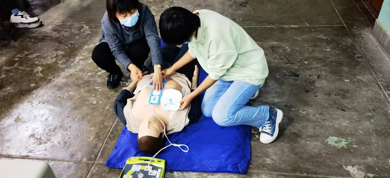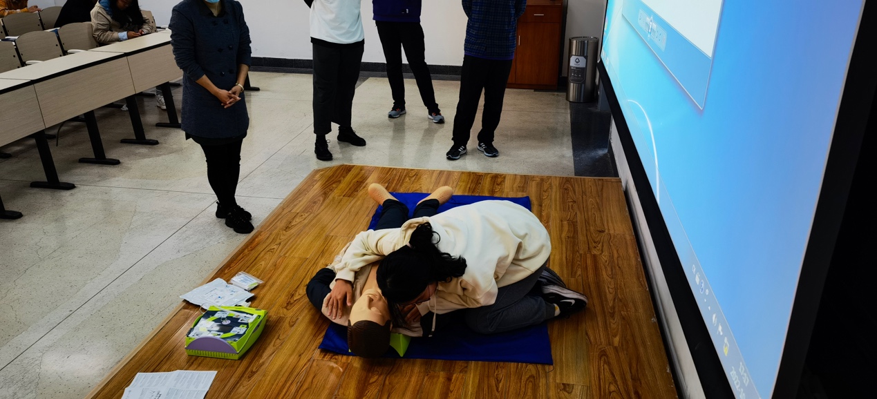 课堂现场,董艳华老师通过引入案例、理论讲授与救护技能实操相结合的方式,向同学们详细讲解了救护概念、心肺复苏操作、常见突发事件的处理方法等方面的救护知识。利用模拟人向同学们演示了心肺复苏(CPR)和自动体外除颤仪(AED)操作使用方法,并指导同学们现场进行模拟急救操作。通过培训,同学们纷纷表示学到了十分实用的急救技能,对自己及身边的人来说都多了一份应急救护的保障。