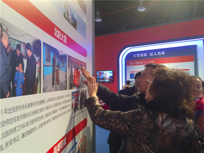 此次展览共分为七个主题,内容涵盖学科建设、人才培养、人才引育、科研创新、国际交流合作、民生、党建等方面,展示了党的十八大以来,北航人不忘初心、砥砺奋进、跨越发展的五年。大家跟随讲解员,认真聆听学习,观看了大量的图片、表格和文字描述,深深体会了北航这五年来在各方面取得的历史成就,深受鼓舞。
