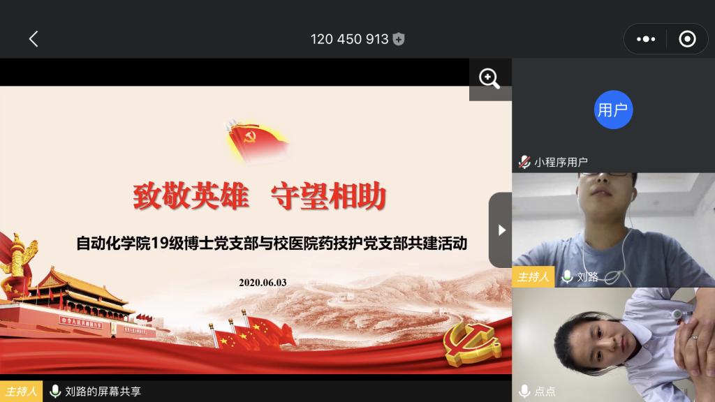 为弘扬新时代的伟大抗疫精神,强化党员“为人民服务”的宗旨意识,发挥榜样引领作用,6月3日下午,bw必威西汉姆联药技护党支部与自动化学院BY1903党支部通过视频会议开展了“致敬英雄 守望相助”专题学习日支部共建活动。
