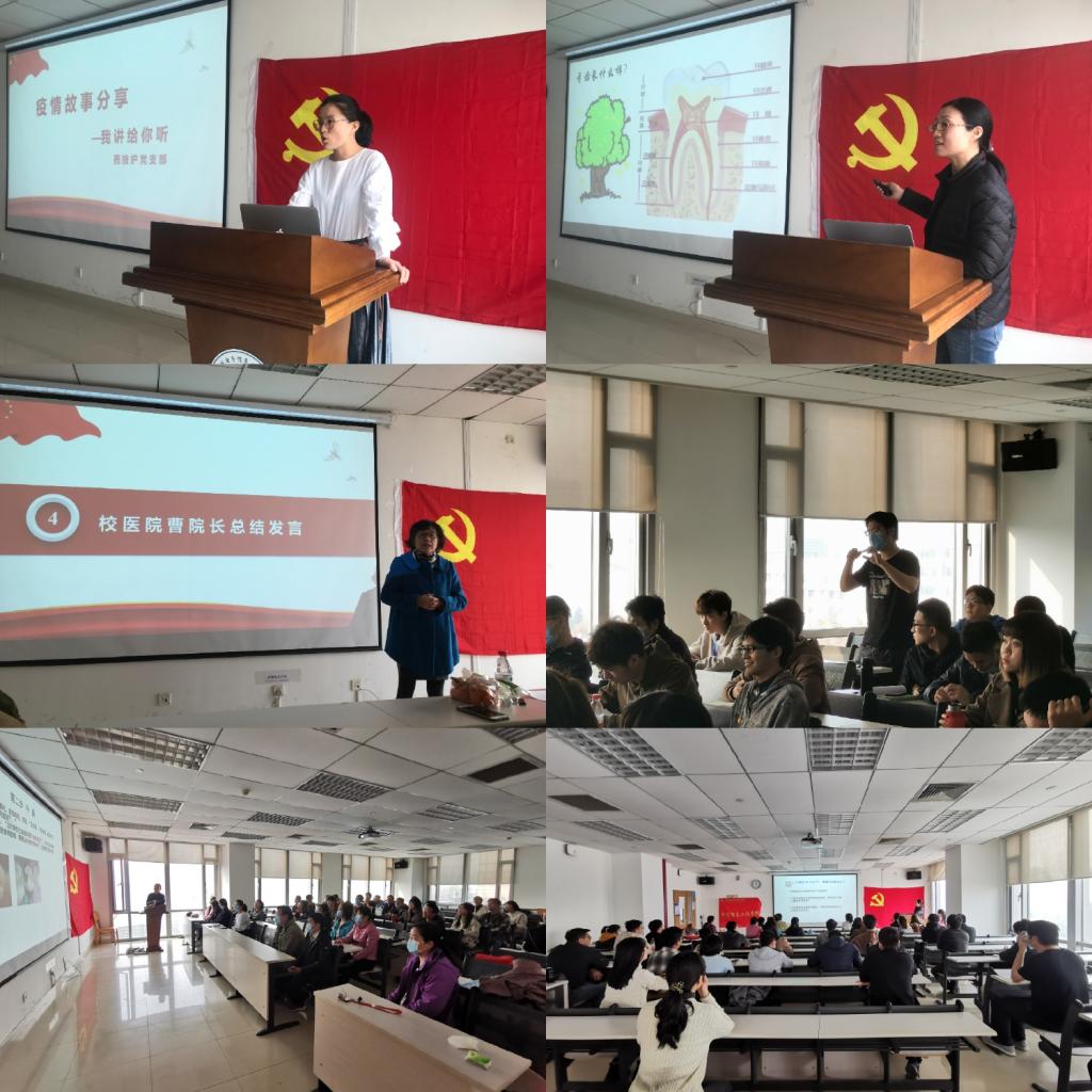 活动首先由药技护党支部党员杨小飞分享新冠疫情期间在校园和首都抗疫一线的故事,通过亲身经历,感悟伟大抗疫精神并践行作为一名共产党员的使命担当。在与BY19021党支部同学们交流感想后,由办公室党支部邀请口腔科张晓花医生,带来关爱牙齿的科普讲座,分享牙齿常见病及预防诊疗知识,形式生动、图文并茂,并解答同学们生活中遇到的有关刷牙方式、龋齿、牙齿酸痛等问题。