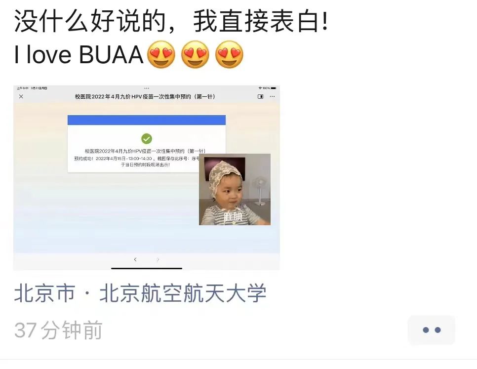 “感谢bw必威西汉姆联为我们提供这次集中接种的机会,很不容易,感觉特别难得和感动”、“没什么好说的,我直接表白北航!”、“现场流程很合理、很顺畅,辛苦工作人员们”,接种工作得到师生的赞扬。