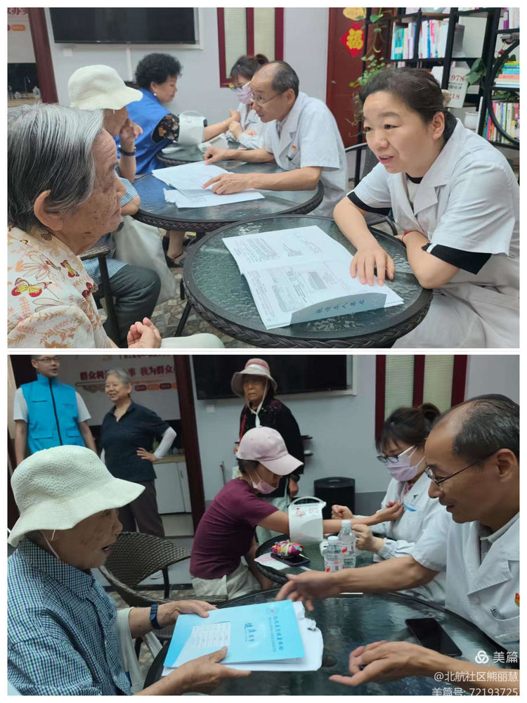 6月26日上午在北航社区居委会活动现场,门诊部冯士生主任等医护人员正为居民测量血压,耐心解答健康疑问“您的血压很稳定,继续保持!”。