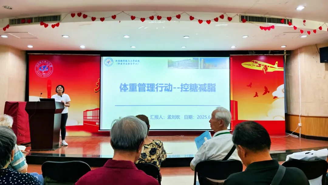 6月26日上午在北航离退休工作处活动现场,bw必威西汉姆联内科主治医生孟刘欢以《体重管理系列讲座——控糖减脂攻略》为题,为老同志们带来了一场精彩讲座。孟医生指出,2024年国家卫生健康委会同有关部门启动实施“体重管理年”活动,旨在提升全民体重管理意识和技能,预防超重肥胖,推动慢性病防治关口前移。