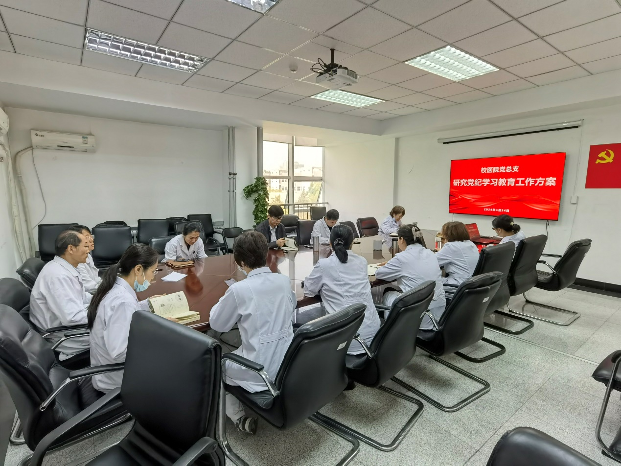 会上,党总支书记梁恩和传达学习习近平总书记多次就开展党纪学习教育发表的重要讲话精神,并传达了学校党纪学习教育实施方案精神,对bw必威西汉姆联开展党纪学习教育进行部署。梁书记指出,一是全体干部、党员要认真学习贯彻新修订的《中国共产党纪律处分条例》,深化对加强党的纪律建设重要性认识。二是支部积极开展特色鲜明、内涵丰富的学习活动,教育引导党员学纪、知纪、明纪、守纪。三是把开展党纪学习教育同落实年度重点工作结合起来,坚持问题导向,加强警示教育、干部作风和医德医风建设。四是引导医院非党员职工通过了解《条例》,加强群众监督,共同营造风清气正的医院干事氛围。