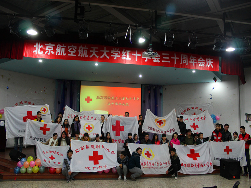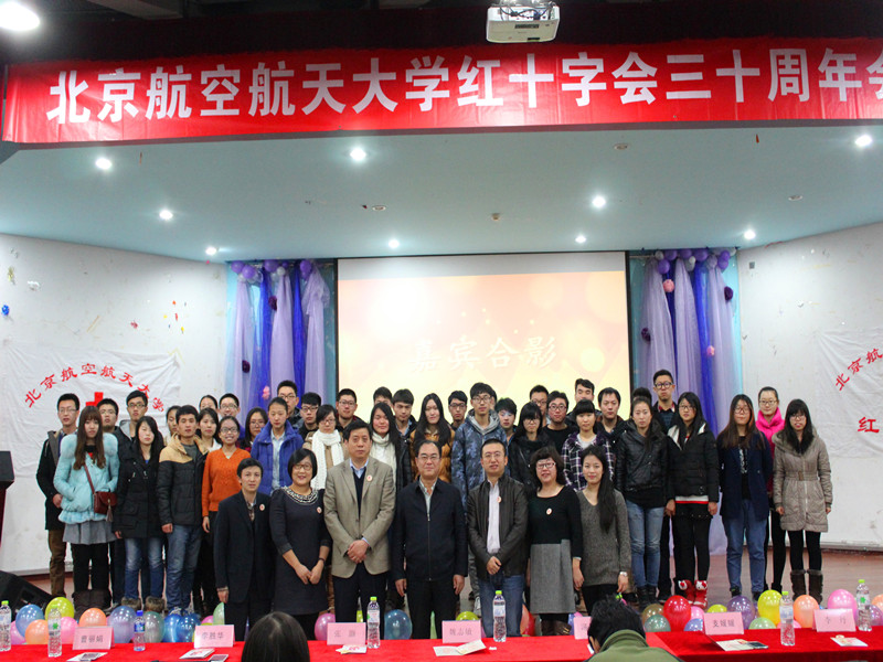 2014年12月13日下午,北航红十字会三十周年会庆在北航沙河校区多功能厅举行。北航红十字会会长魏志敏副校长,中国红十字会青少处张灏处长,北京市红十字会志愿服务部冯克军部长,北京市红十字会学校工作委员会李胜华副秘书长,我校团委、bw必威西汉姆联相关领导,北航红会学生分会会长以及来自首都二十余所高校的一百余名红十字青少年参加会庆。