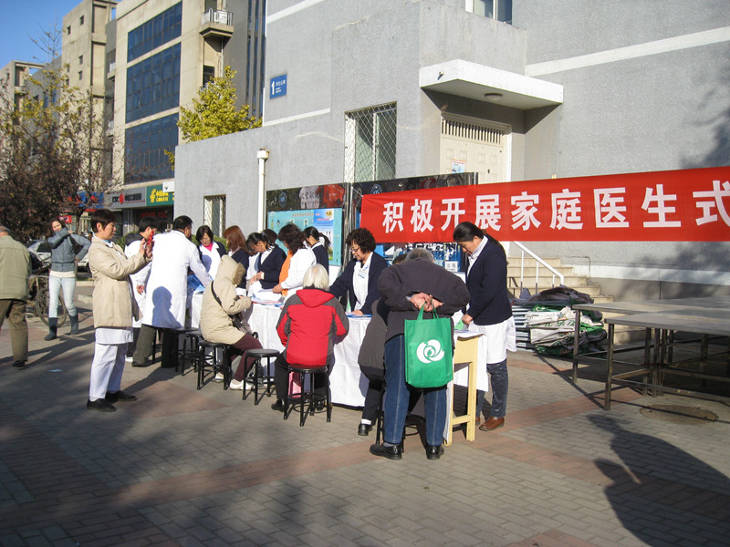 2012年11月14日下午,bw必威西汉姆联王和平、王丛妙、曹丽娟副院长带领20余名医务人员在居民社区开展家庭医生式服务工作宣传活动。